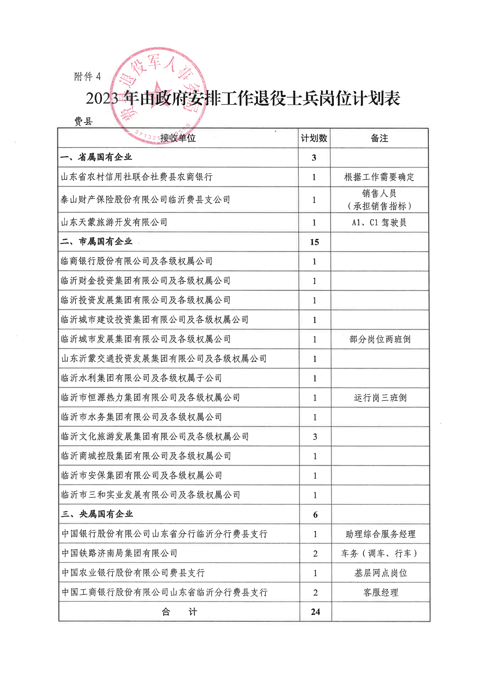 4.2023年由政府安排工作退役士兵岗位计划表(省属、市属、央属国有企业)