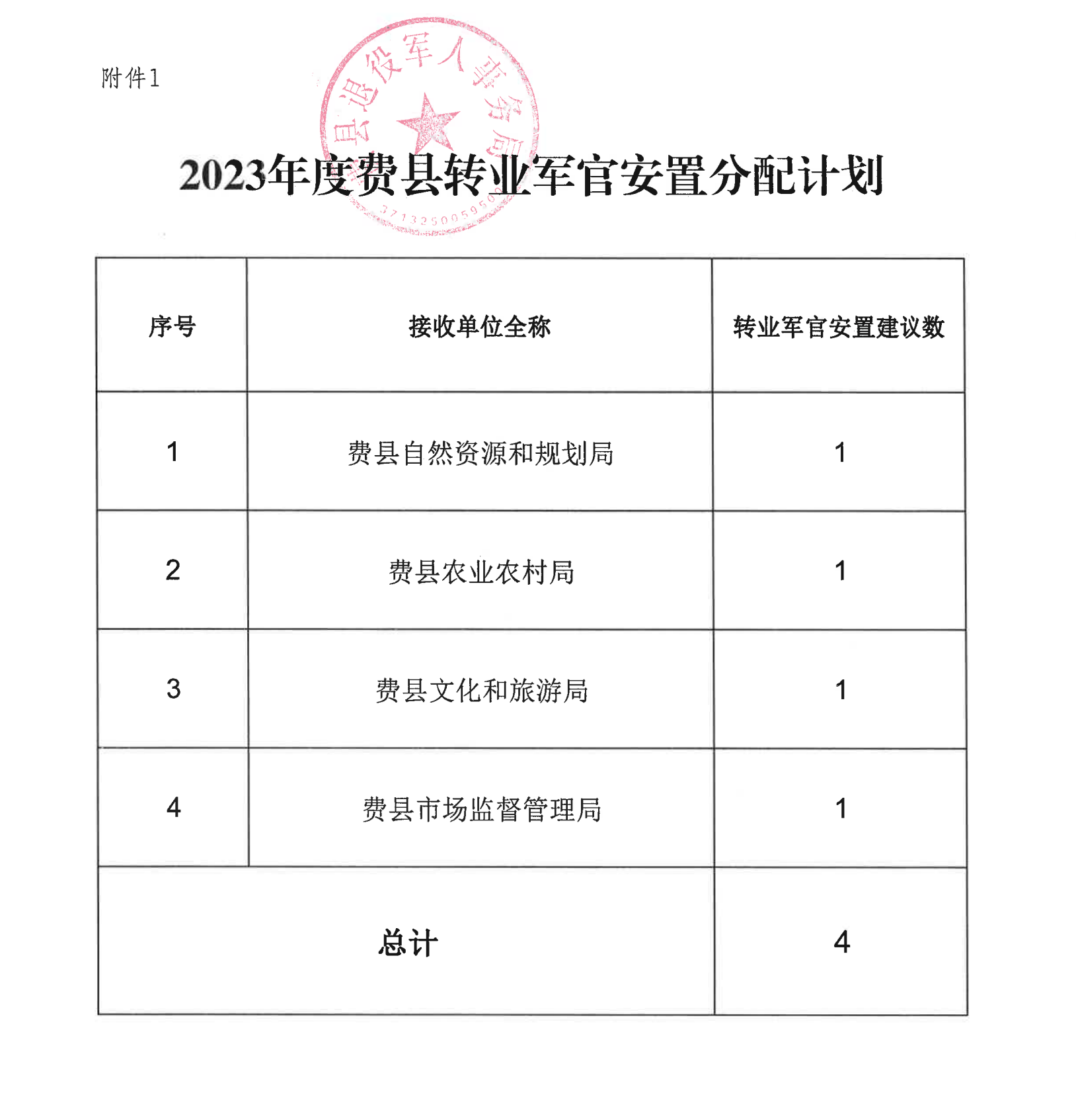 附件:1.2023年度费县转业军官安置分配计划