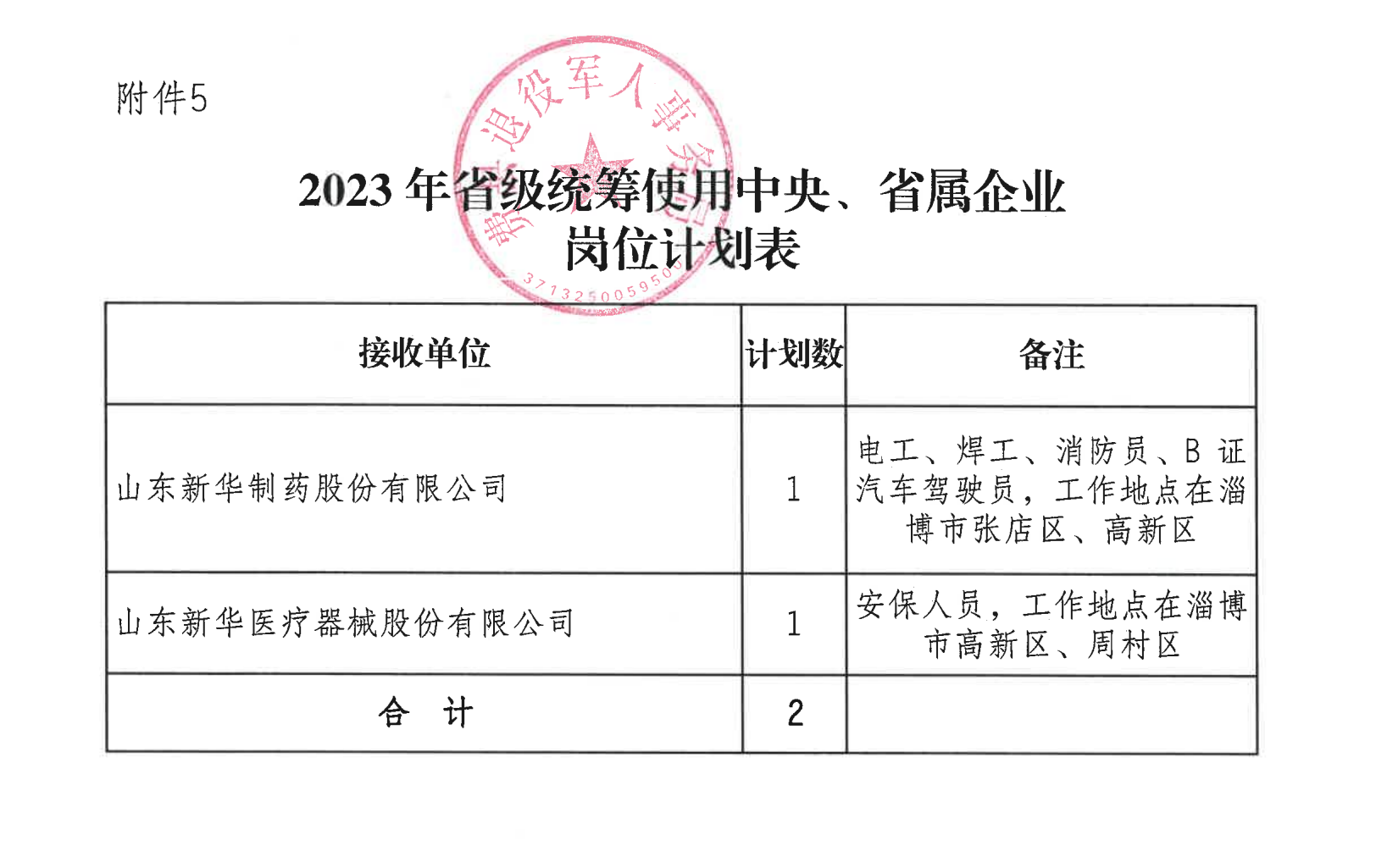 5.2023年省级统筹使用中央、省属企业岗位计划表