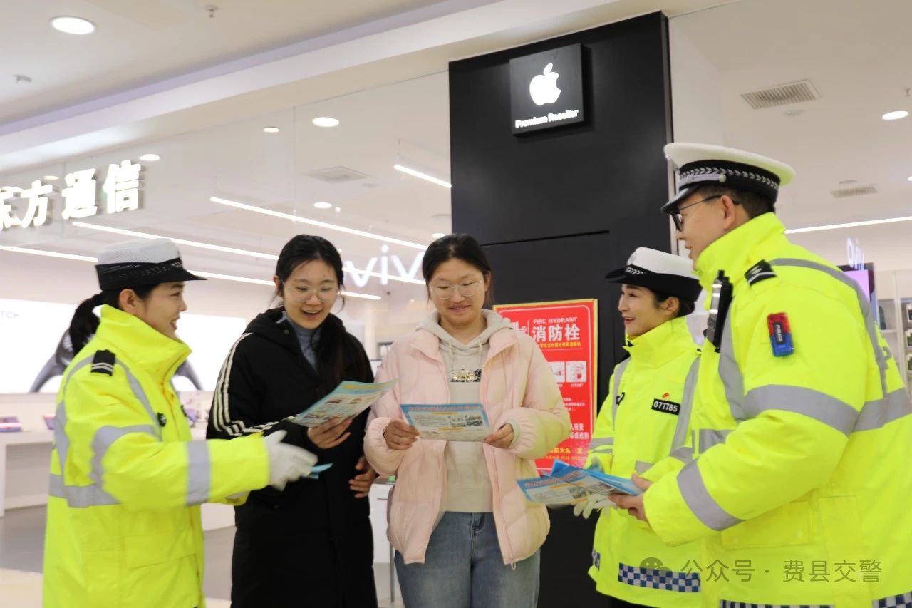 为进一步提高广大交通参与者的交通安全意识和“知危险 会避险”能力,有效预防和减少道路交通事故的发生,近日,费县交警大队利用春节假期走进辖区商场开展交通安全宣传活动。