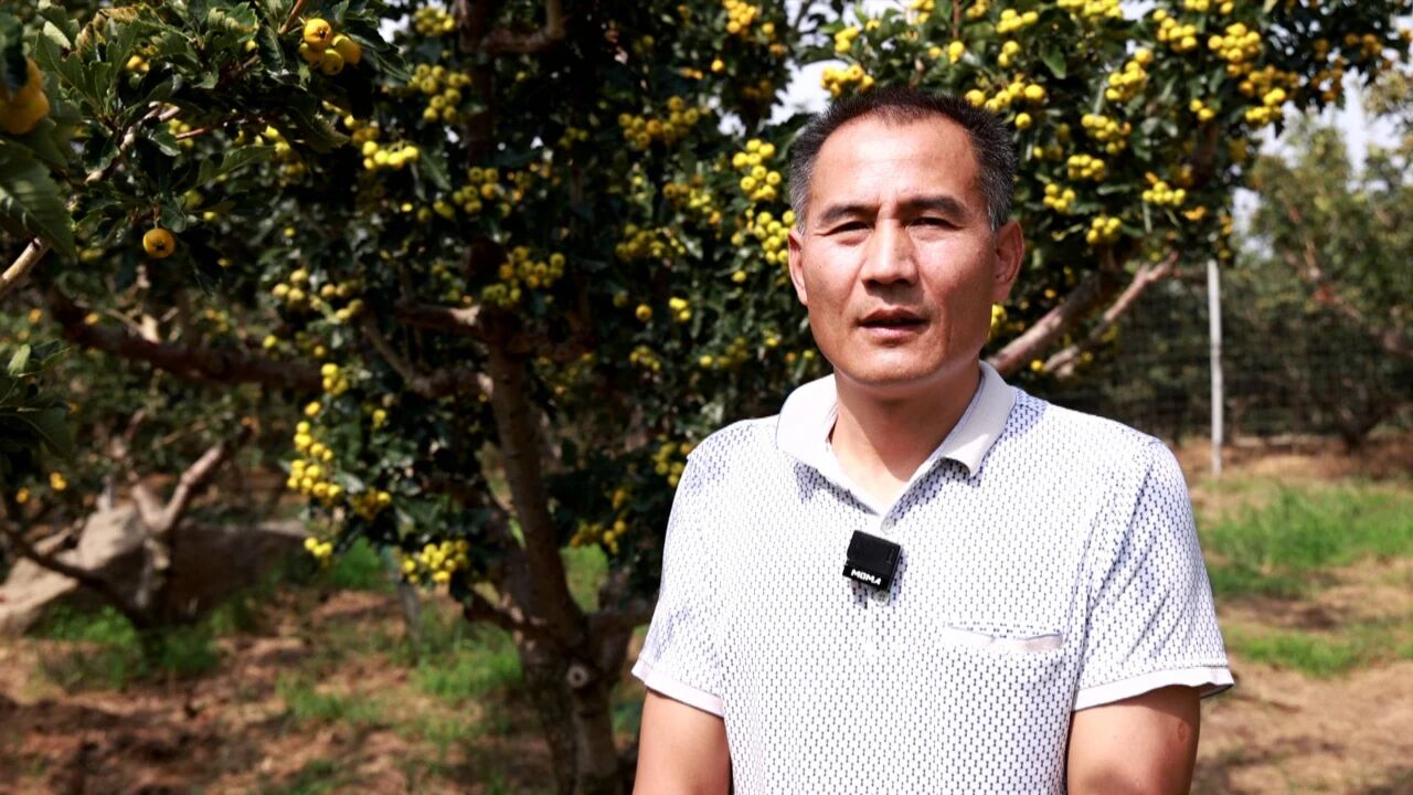 东蒙镇果树站副站长、高级农艺师 徐兴文:“我们东蒙镇现有山楂种植面积一万余亩,前两年通过高接换头黄山楂,现有黄山楂种植面积两千亩左右,这种山楂成熟期早,在八月底九月初上市,而且高抗日烧病、白粉病等多种病害,价格比普通山楂高五到七倍,主要供应电商和大型超市。通过黄山楂的种植推广,大大提高了果农的收入,让更多农民通过山楂产业走上致富路。”