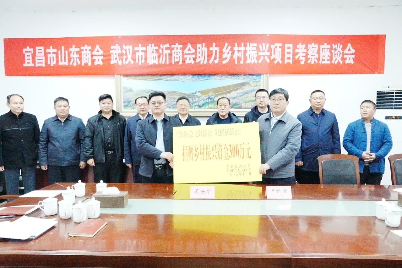 12月22日,费县朱田镇举行“同话桑梓情·共建幸福路”公益捐赠仪式。宜昌市山东商会、武汉市临沂商会、湖北雅清科技有限公司向朱田镇定向捐赠300万元,用于修缮乡村道路,助力乡村振兴。