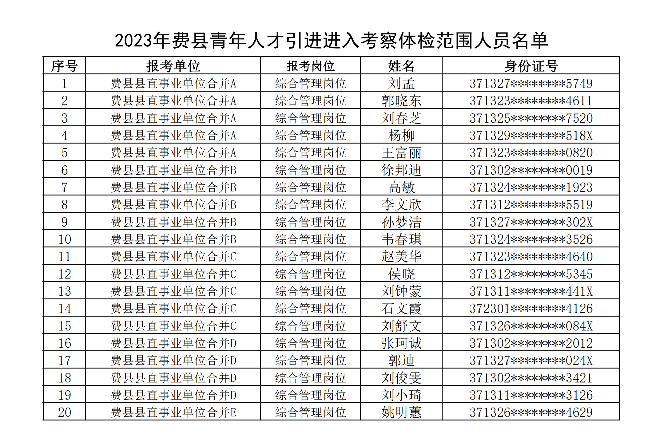 | 2023年费县青年人才引进进入考察体检范围人员名单公告 | ||||||||||||||||||||||||