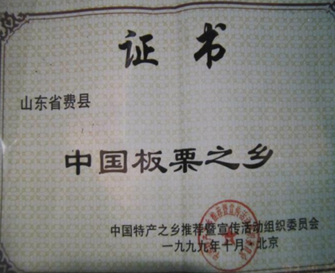 费县板栗1997年荣获“中国青岛国际农业科技博览会农业新技术、新产品转化推广奖”金奖,同年11月又被山东省林业厅、山东省经济林协会授予“一九九七年山东省经济林名特优果品鉴评金奖”称号,获“98全国林副产品博览会推荐品牌”,2002山东省首届林产品博览会优质产品奖。1999年10月,马头崖乡被中国特产之乡暨宣传活动组织委员会推荐命名为“中国板栗之乡”;2000年2月,山东省林业厅授予费县“名特优经济林板栗之乡”称号;2001年费县果业局注册了“沂丰牌”商标;2004年12月,全县2556.2亩板栗通过了有机食品认证,填补了我县有机食品认证领域空白。2006年10月,费县薛庄镇板栗生产基地被临沂市政府命名为临沂市市级农业标准化生产基地;2008年12月,费县薛庄镇人民政府沂丰牌板栗被命名为临沂市名优农产品。