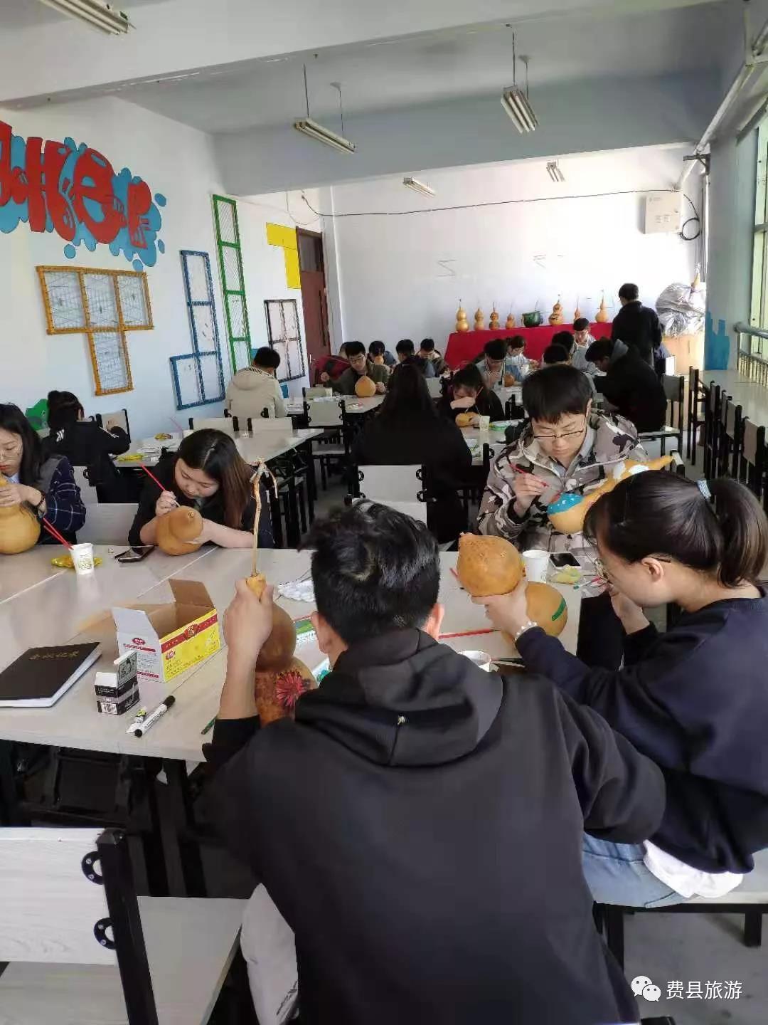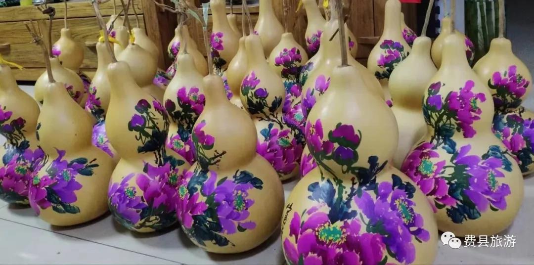 费县葫芦雕刻彩绘技艺是费县特有一项葫芦制作技艺,最早以制作养蝈蝈容器为主,将扁圆的油葫芦采摘后,去皮晾干,放入锅内添水加适量儿茶,将葫芦煮成暗红色,然后使以雕刻,雕刻的内容以戏曲人物花鸟鱼虫山水为主,雕刻完成后在雕刻的凹线里填上各类颜色,又称葫芦染雕技艺。还有一种素葫芦雕刻技艺,直接将图案刻在素葫芦上,然后上色,这种叫素雕葫芦。