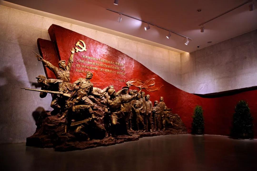 而这近六千人中有战斗力的人员仅有六百余人,其余的全是非武装人员。而此时,北、东、南三面的敌人越逼越近,随时都有被敌人合围的危险。就在这生死存亡的危急时刻,抗大一分校校长周纯全沉着冷静,毅然担起了指挥突围的任务,他迅速组织人员在南涝坑紧急分析敌情、部署突围,这组雕塑刻画的便是周纯全与政委李培南、训练部部长袁也烈、训练部副部长阎捷三火线决策的场景。周纯全命令五大队大队长陈华堂,率战斗力最强的校五大队担负阻击任务,(政委李培南负责疏导一分校机关和伤病员突——训练部部长袁也烈负责疏导山东分局、省战工会等机关人员突围,)训练部副部长闫捷三带领校警卫连和分局警卫连打开西南方向的突破口。