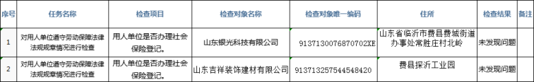 费县市场监督管理局牵头、费县人力资源和社会保障局2023年部门联合双随机检查结果
