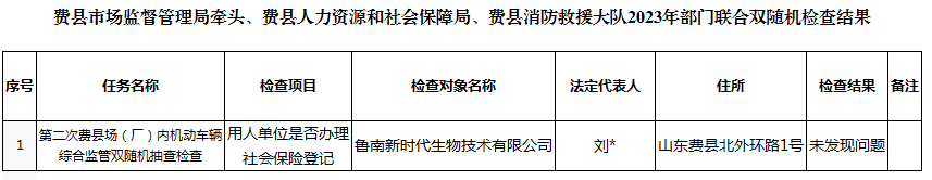 费县市场监督管理局牵头、费县人力资源和社会保障局、费县消防救援大队2023年部门联合双随机检查结果