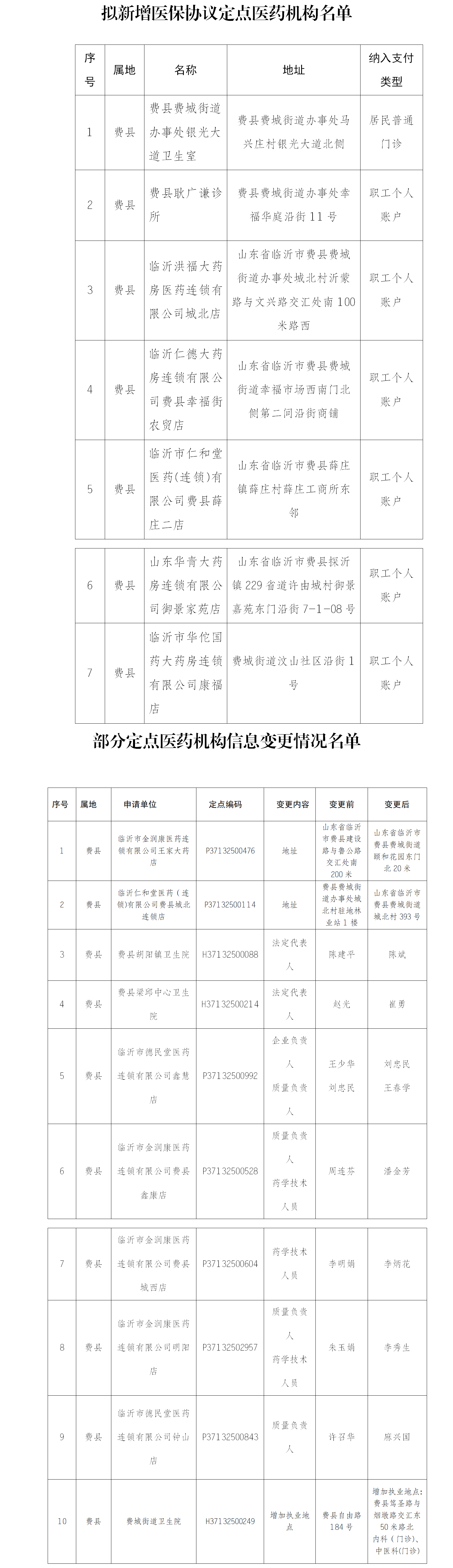 | 关于拟新增定点医药机构、部分定点医药机构信息变更情况的公示 | ||||||||||||||||||||||||