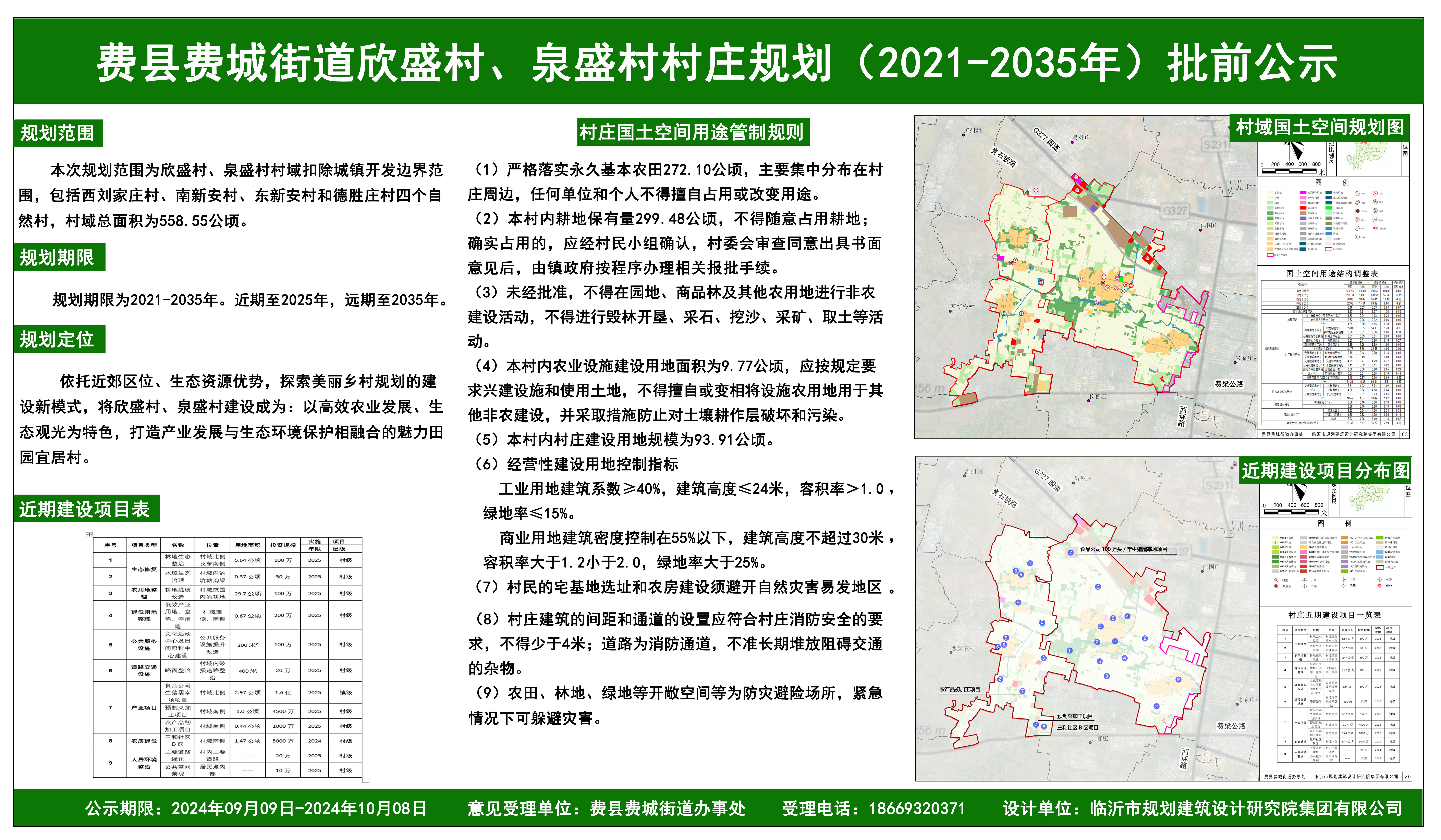 | 费县费城街道欣盛村、泉盛村村庄规划(2021-2035年)批前公示 | ||||||||||||||||||||||||