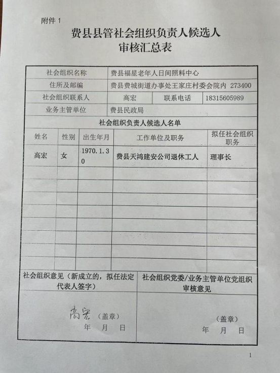 | 费县福星老年人日间照料中心第一届负责人候选人人选公示 | ||||||||||||||||||||||||