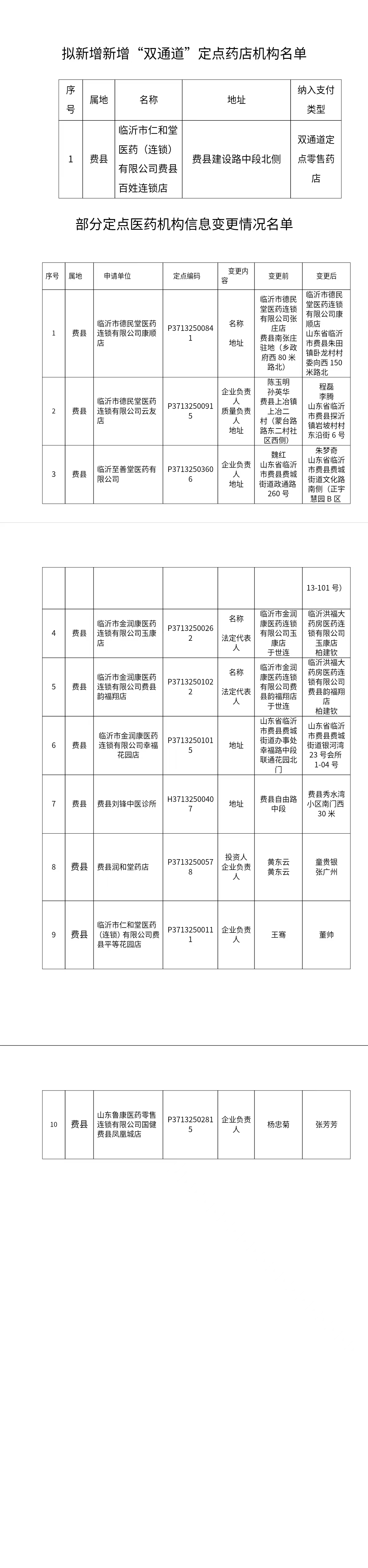 | 关于拟新增“双通道”定点药店、部分定点医药机构信息变更情况的公示 | ||||||||||||||||||||||||