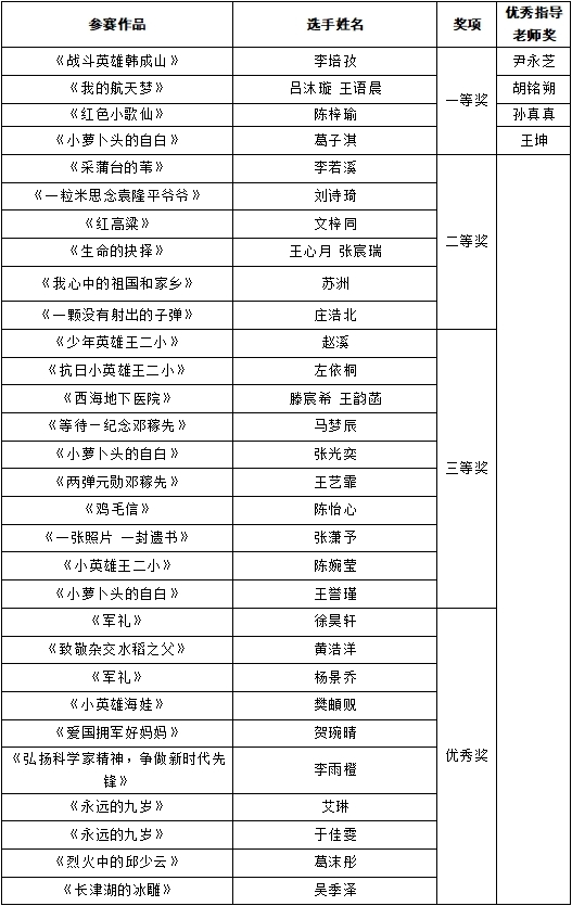10岁至15岁组获奖名单