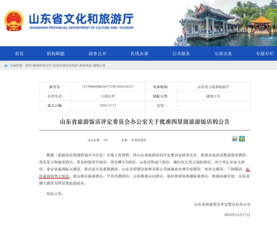 | 【喜报】临沂蓝海钧华大饭店(费县)获评四星级旅游饭店 | ||||||||||||||||||||||||