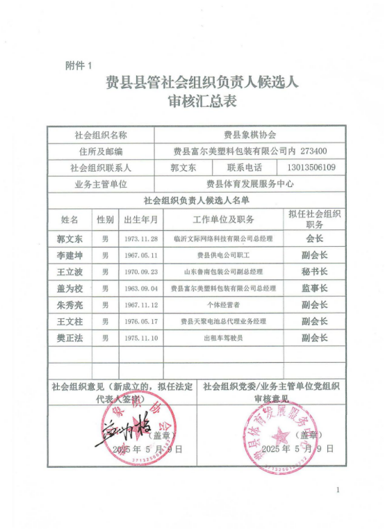 | 费县象棋协会第三届负责人候选人人选公示 | ||||||||||||||||||||||||