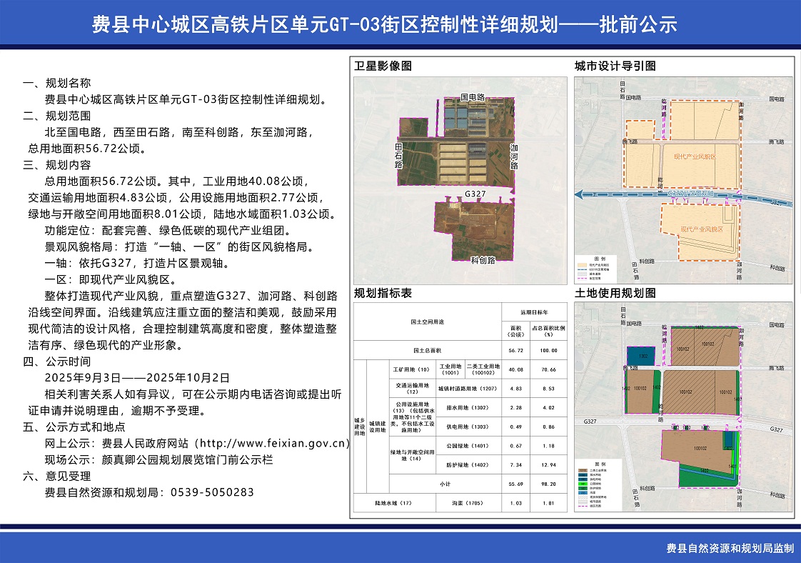 附件【费县中心城区高铁片区单元GT-03街区控制性详细规划批前公示 0903.jpg】 |