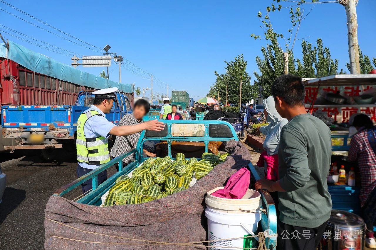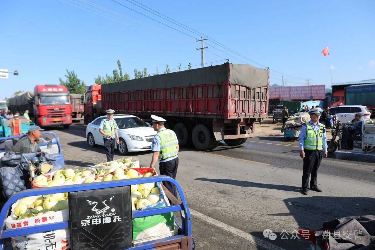 5月份正值甜瓜上市之际,位于费县薛庄镇胜良村的瓜果市场迎来销售旺季,因采购高峰,人流量、车流量较大,导致周边道路交通拥堵,通行困难,存在较大交通安全隐患。为护航辖区甜瓜生产、销售顺利进行,连日来,费县交警大队科学部署警力,合理安排勤务,采取“错时+延时”勤务机制,定人、定岗,分工细致,加大路面管控力度,为群众安全出行保驾护航。
