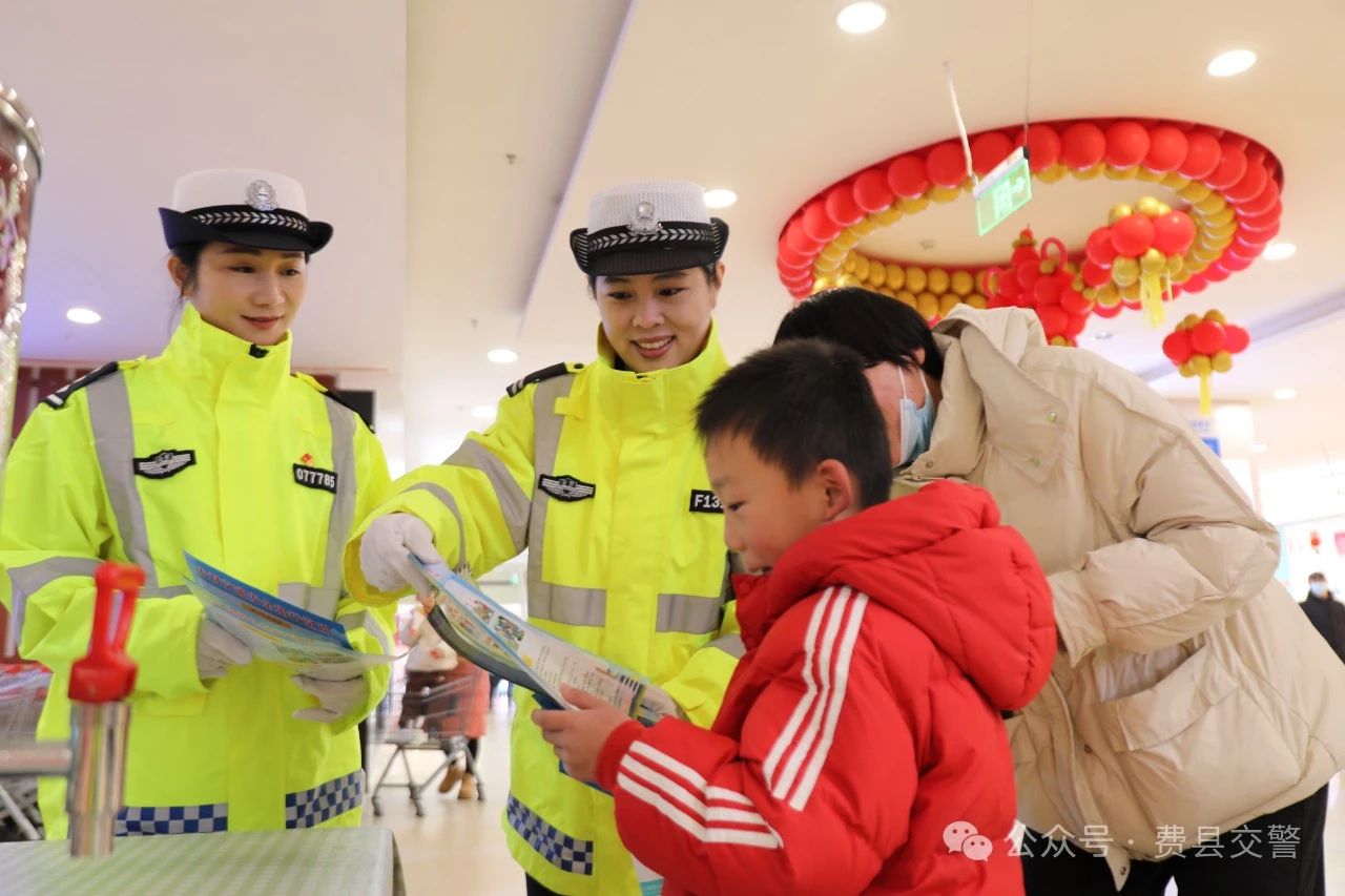为进一步提高广大交通参与者的交通安全意识和“知危险 会避险”能力,有效预防和减少道路交通事故的发生,近日,费县交警大队利用春节假期走进辖区商场开展交通安全宣传活动。