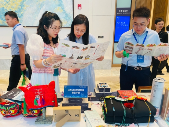 费县文旅局精心布展,通过精彩的展台、图文并茂的手册以及详尽的旅游产品推介,充分展示了费县得天独厚的旅游资源,“千年古县”的历史人文景观。沂蒙山小调诞生地、云瀑洞天景区、山东省级非遗项目费县手绣等文旅产品引起了在场嘉宾的浓厚兴趣,大家纷纷进行现场咨询,实现了对费县文旅成果全方位、立体化的有效宣传,为更多客商了解费县、走进费县提供了契机。