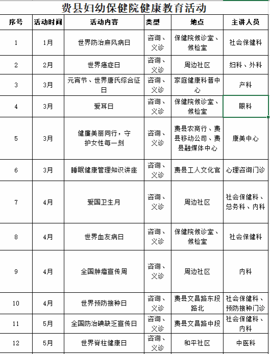 费县妇幼保健院健康教育活动