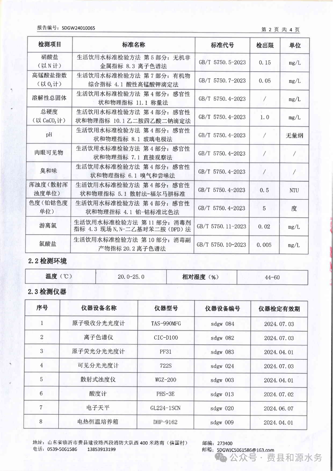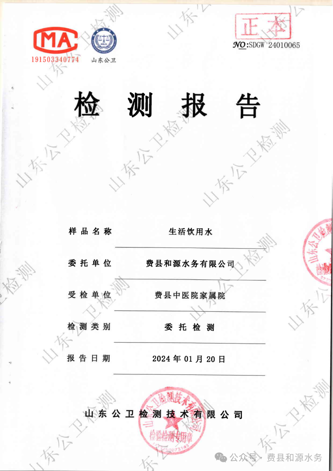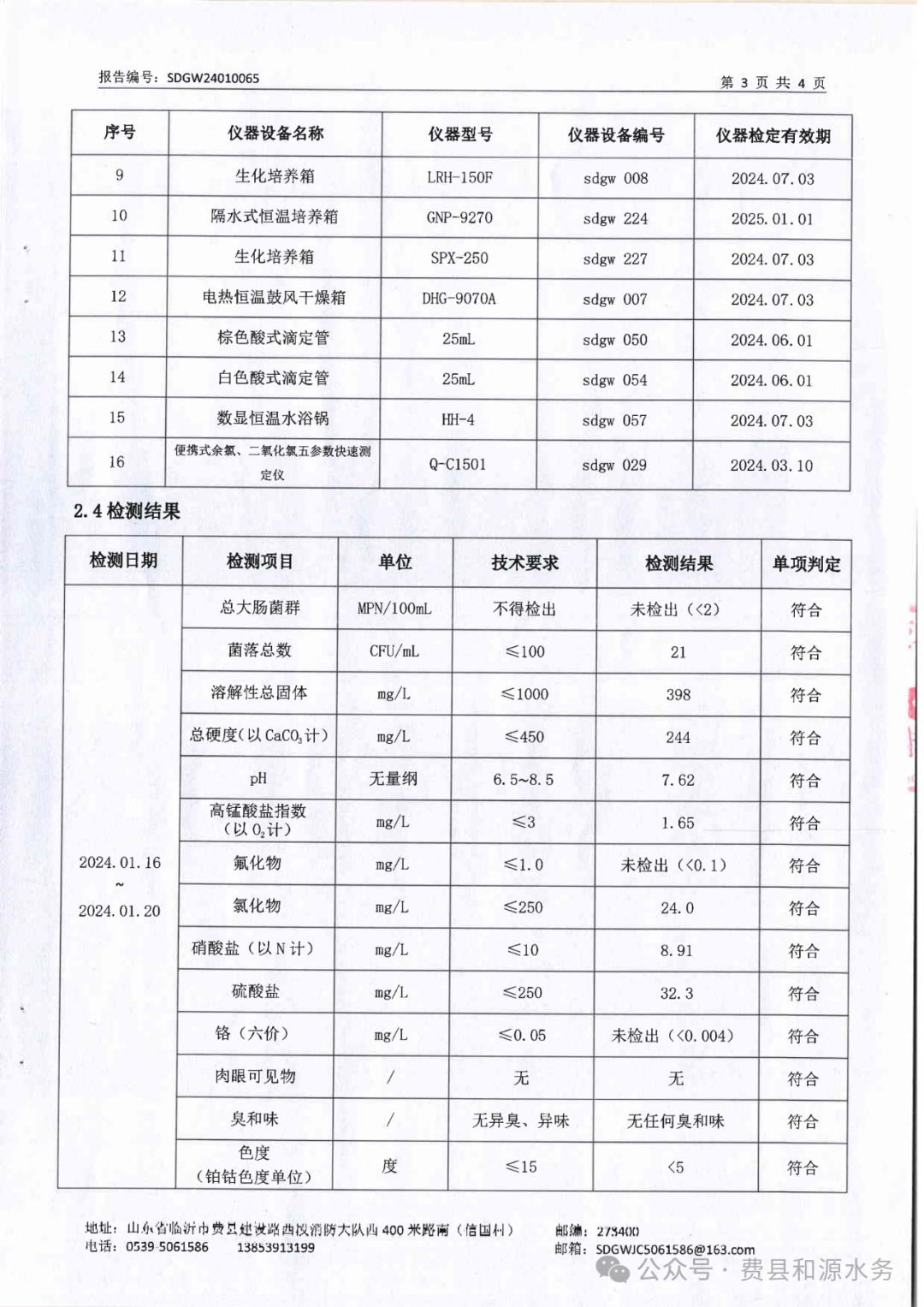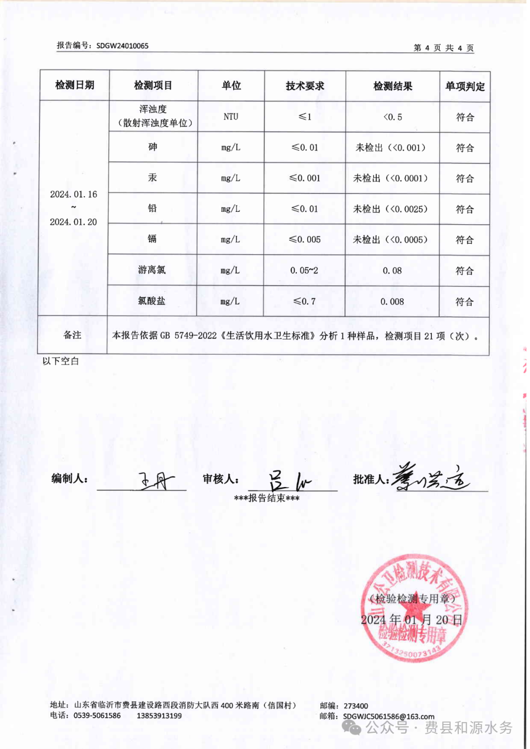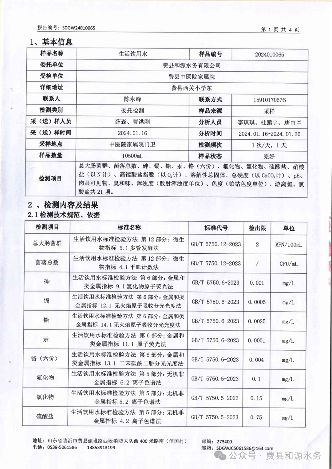 2024年1月水质检测报告(管网末梢水)