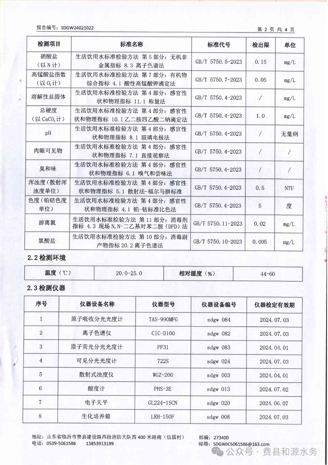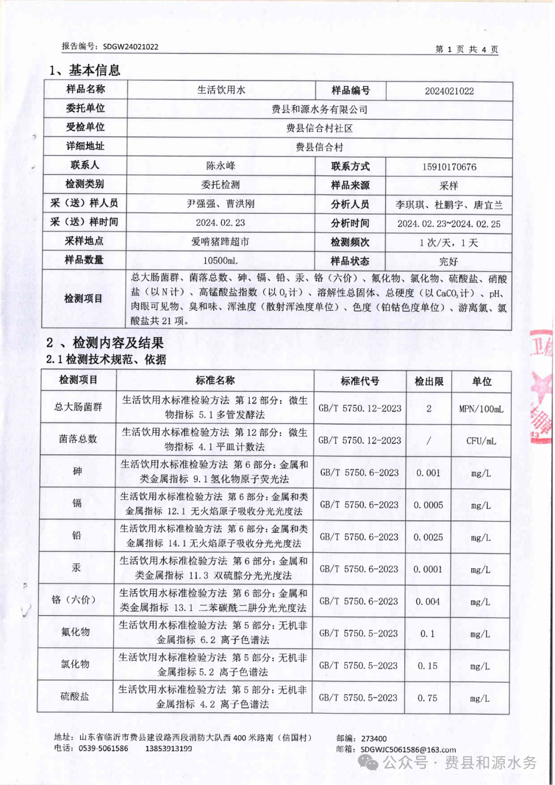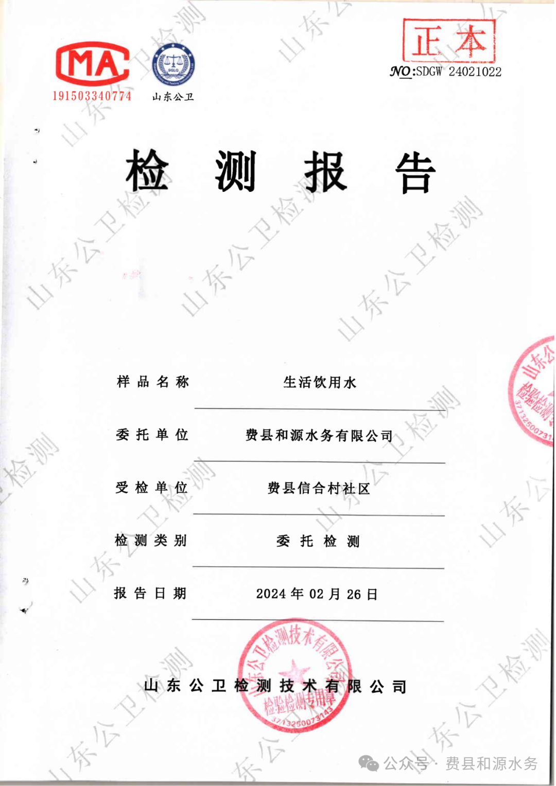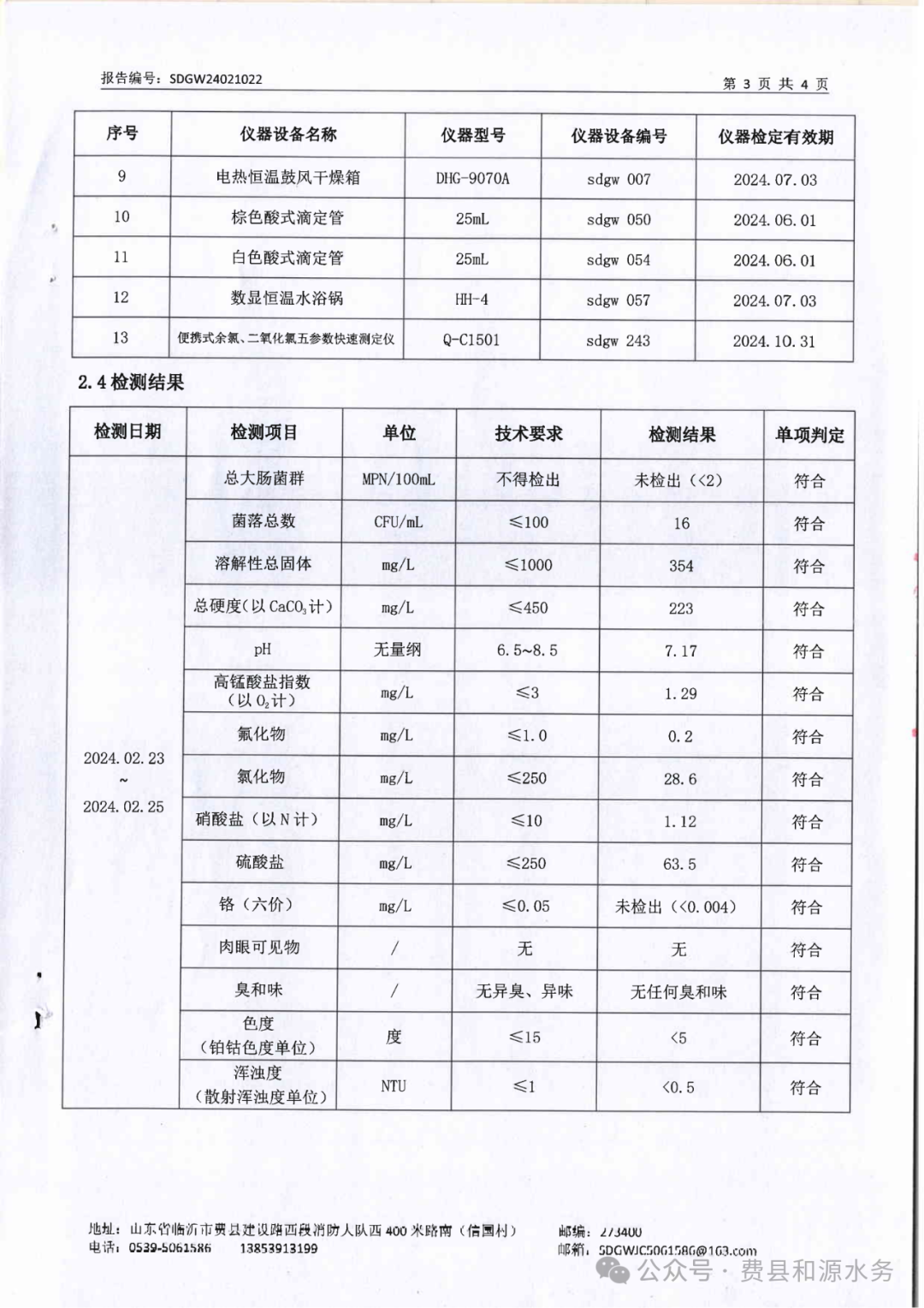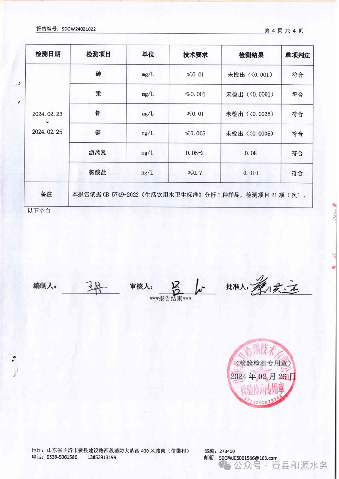 2024年2月水质检测报告(管网末梢水)