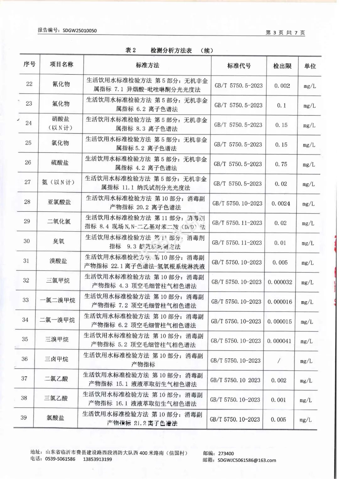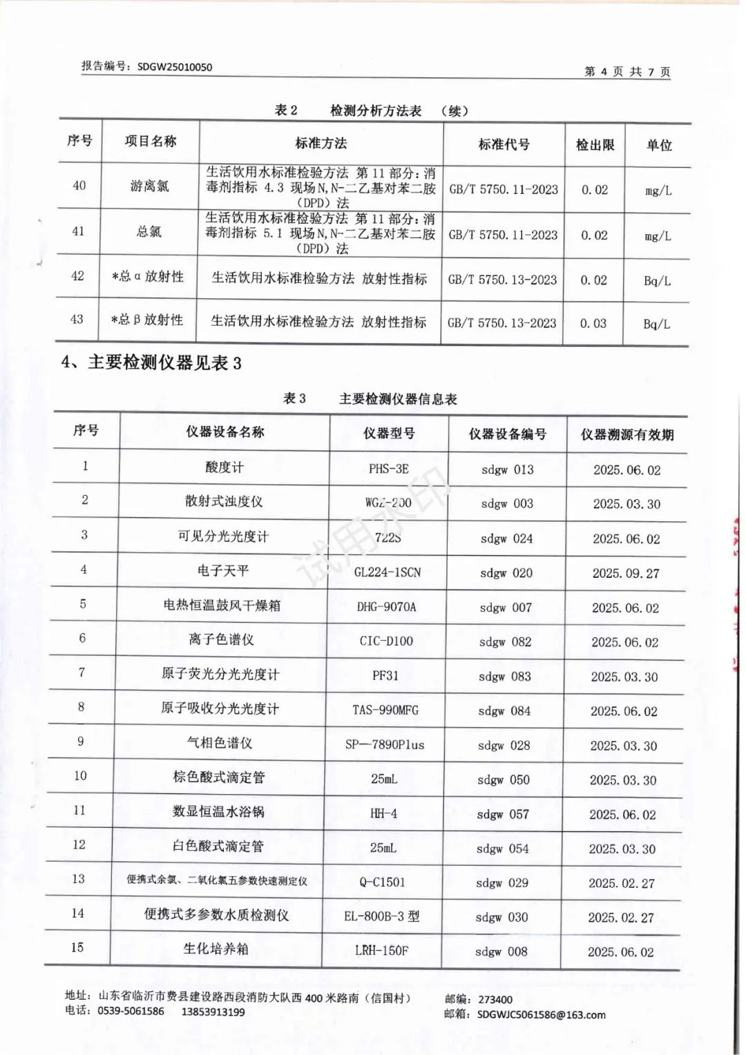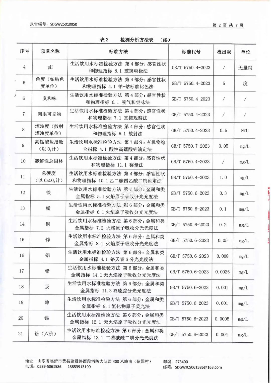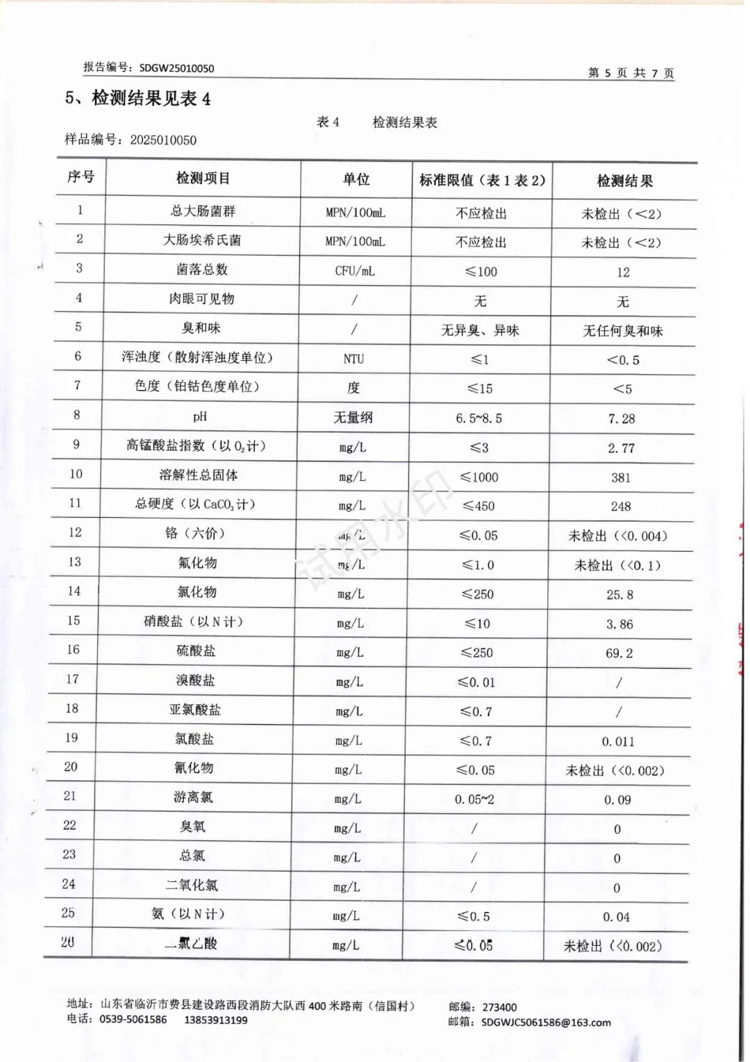 2025年1月水质检测报告(管网末梢水)