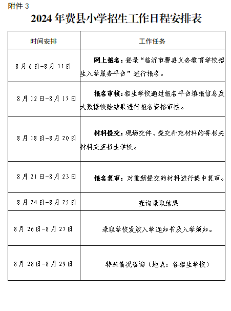 3.2024年费县小学招生工作日程安排表