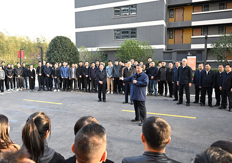 近年来,上海市加快保障性租赁住房建设,为许多来沪新市民、青年人和一线务工人员提供了住房保障。29日下午,习近平到闵行区新时代城市建设者管理者之家考察。听了当地加大保障性租赁住房筹措建设力度、构建“一张床、一间房、一套房”多层次租赁住房供应体系的情况介绍,习近平给予充分肯定。他先后走进社区住宅型、宿舍型出租房源租户的住房和公共厨房、公共洗衣房等共享空间,仔细了解在此居住的城市一线工作者的生活状况。总书记无微不至的殷切关怀,让在场所有人感动。离开时,社区居民纷纷围拢过来欢送总书记。习近平说,看到来自五湖四海的建设者在这里安居乐业,感到很高兴。城市不仅要有高度,更要有温度。我们的社会主义就是要走共同富裕的路子。外来务工人员来上海作贡献,同样是城市的主人。要践行人民城市理念,不断满足人民群众对住房的多样化、多元化需求,确保外来人口进得来、留得下、住得安、能成业。