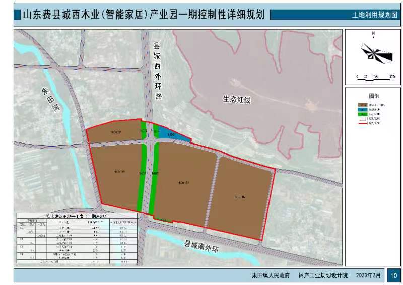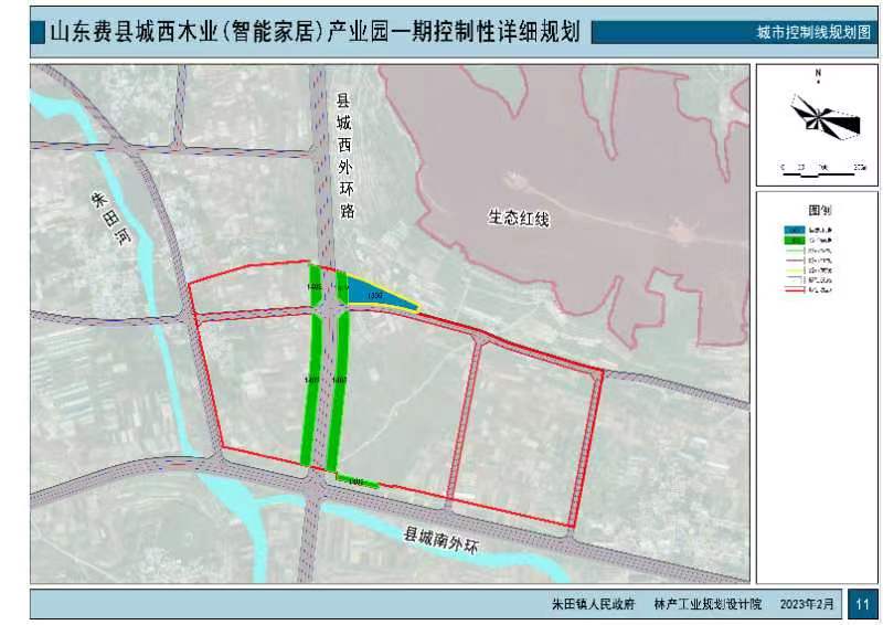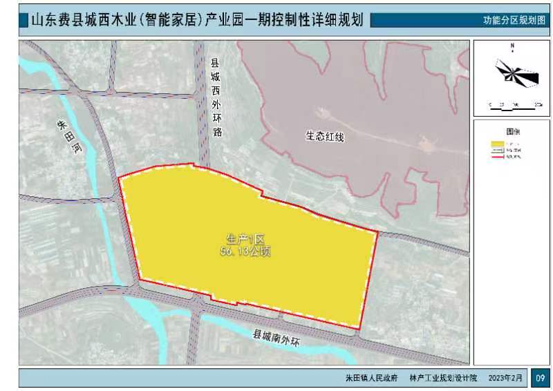 (1)规划范围:山东费县城西木业(智能家居)产业园一期位于费县县城西部,朱田镇镇驻地东部,总规划面积56.13公顷,用地范围东至响井路,西至嘉乐路,南至县城南外环,北至永安路北130m处。