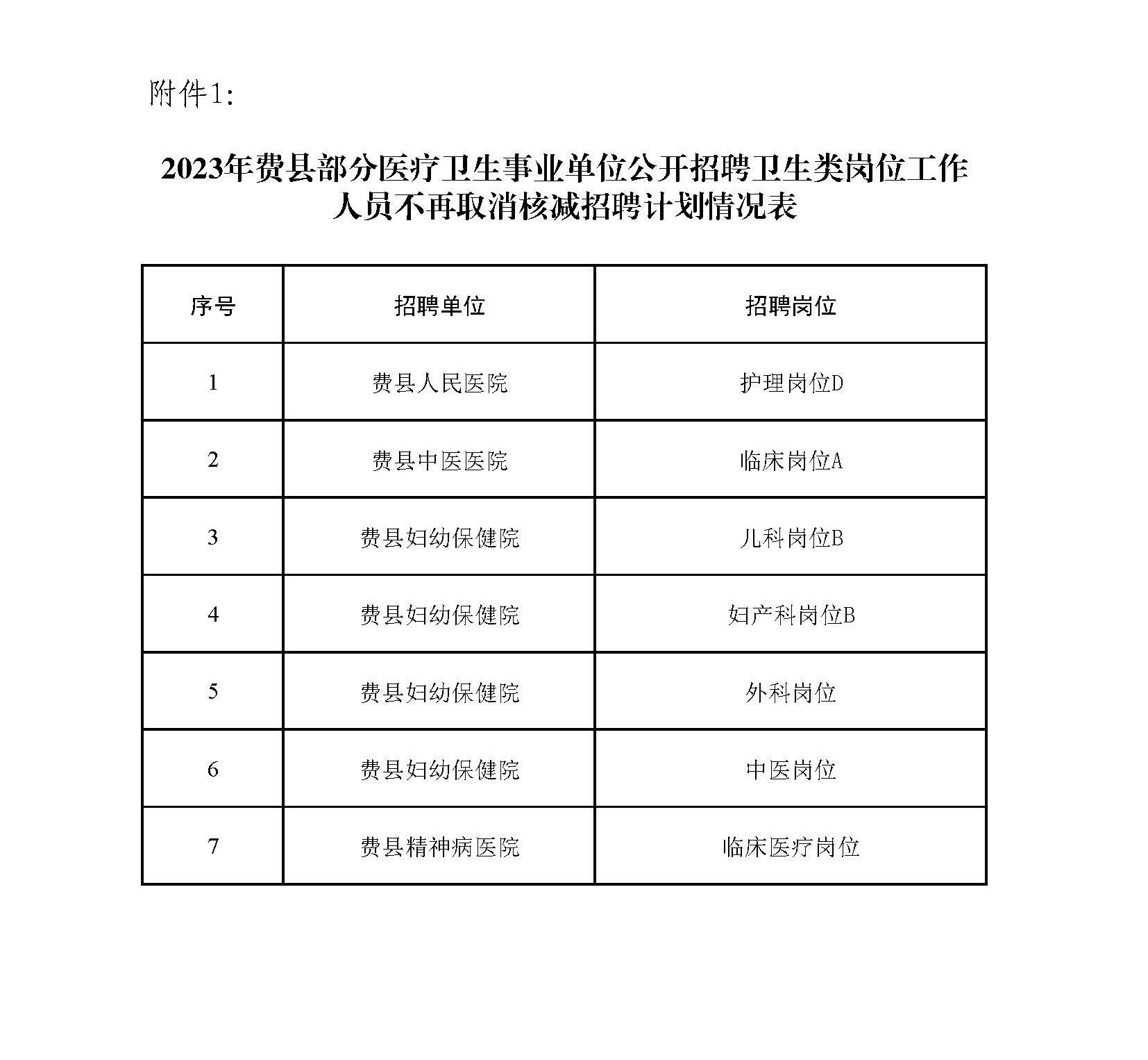 附件1:2023年费县部分医疗卫生事业单位公开招聘卫生类岗位工作人员不再取消核减招聘计划情况表