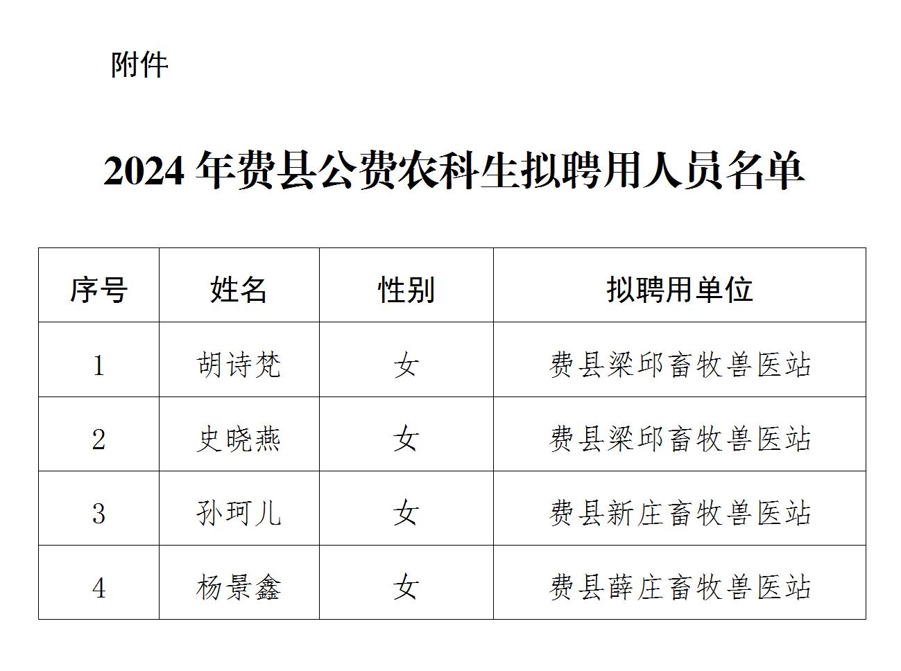 根据中共山东省委组织部、山东省农业农村厅等六部门下发的《关于做好2020年基层农技推广人才(公费农科生)定向培养工作的通知》(鲁农科技字〔2020〕26号)和《山东省公费农科生定向培养协议书》等有关要求,经考察、体检,现将拟聘用人员名单进行公示(见附件),公示期7个工作日(7月15日—7月23日)。