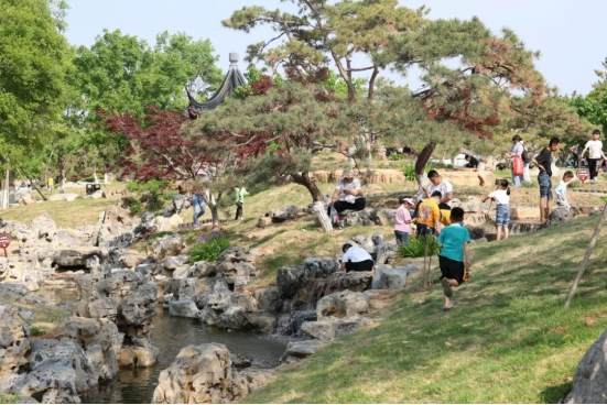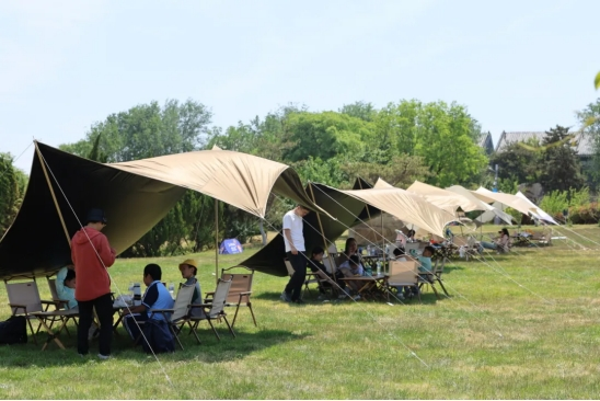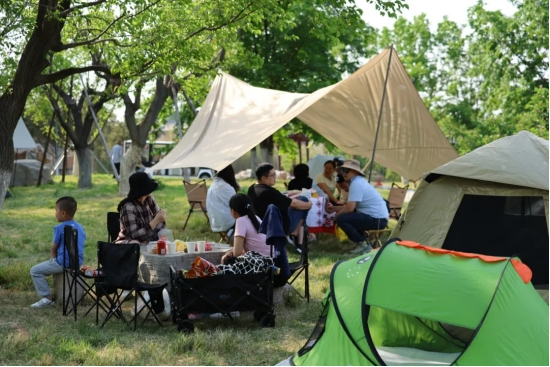 改造升级后的奇石城文化旅游区,不仅有形态各异的奇石、苏氏园林的庭院、装饰一新的乌篷船,还有最吸引人的微度假氛围感,蓝天、白云、绿地、巨型气模、网红标语,特别“出片”。随处可见户外露营、野炊的身影,大家走出繁忙,亲近自然,尽享户外美好时光。园区特设“漫时光”露营地,提供各类帐篷及户外设备租赁,配备露营烧烤专区、休闲娱乐区、房车营地区等,全方位多层次为游客提供优质服务和精致体验。