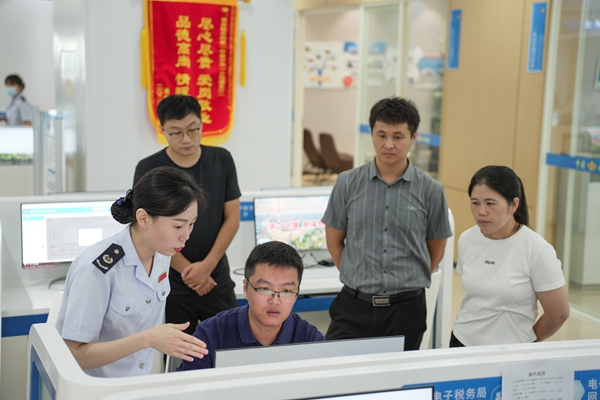 进窗口,体验办税缴费流程优服务。参加活动的代表走进办税服务大厅,详细听取了各功能区介绍。在电子税务局专区,群众代表了解了“线下服务无死角、线上服务不打烊、定制服务广覆盖”的具体措施,亲身体验了相关办税缴费流程。在“人大立法点”征求意见建议处,纳税人缴费人还听取了最新税费优惠政策落实情况。